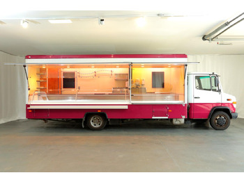 Gepflegtes Wochenmarkt-Verkaufsmobil mit separater Frischfleisch-Abteilung.